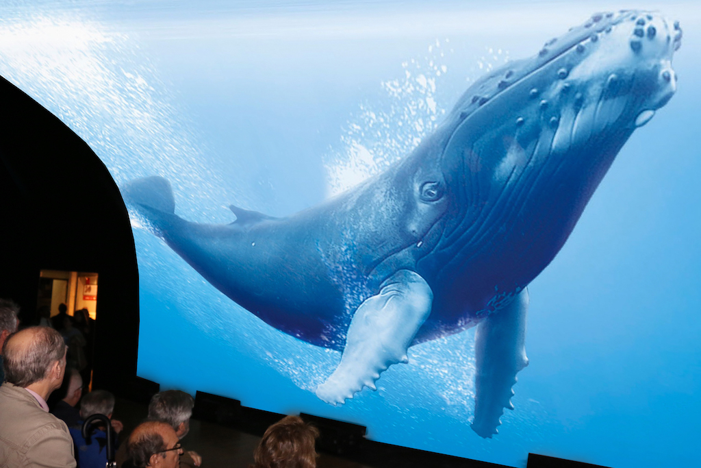 Pero quizás una de las zonas que más impresiona al visitante es una gran pantalla curva de 12×6,65 地铁 (260 平方米). Gracias a nueve proyectores 索尼 VPL-FHZ55 con lentes de 1,39 y 0,8, a un sistema Watch Max de 达顿 y un sistema de audio de Beringer y Element, Oceános. El último territorio salvaje ofrece impactantes escenas con efecto inmersivo.