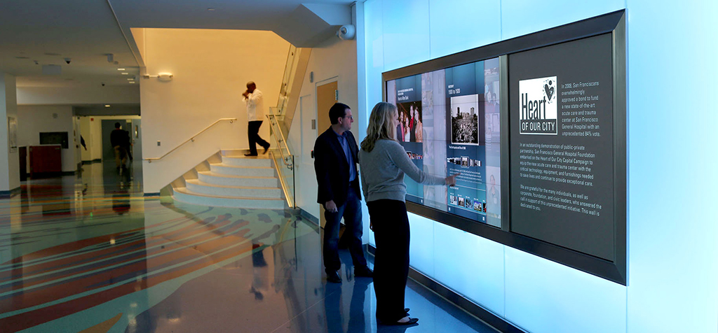 感官互动 ha desarrollado para el hospital general de Zuckerberg en San Francisco (Zuckerberg San Francisco General Hospital and Trauma Center) una pared interactiva que tiene como objetivo el reconocer la solidaridad de todos los donantes que han hecho posible su proyecto.