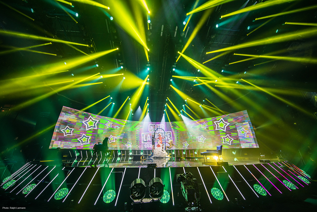 用于舞台, 这家德国公司再次选择了 Clay Paky 技术, 突出显示 150 cabezas móviles Scenius Unico que se han instalado en el escenario.