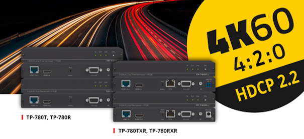 Conforme a HDCP 2.2, las parejas de transmisor/receptor TP-780T / TP-780R y TP-780TXR / TP-780RXR aportan una transmisión de señal flexible y fiable de largo alcance, especialmente ventajoso en salas de reuniones para su correcta distribución, como se muestra en el vídeo adjunto.