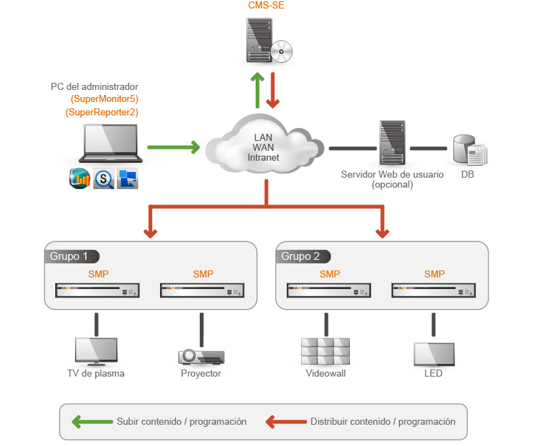 - Actualización de contenido hasta un máximo de mil reproductores SMP simultáneamente.