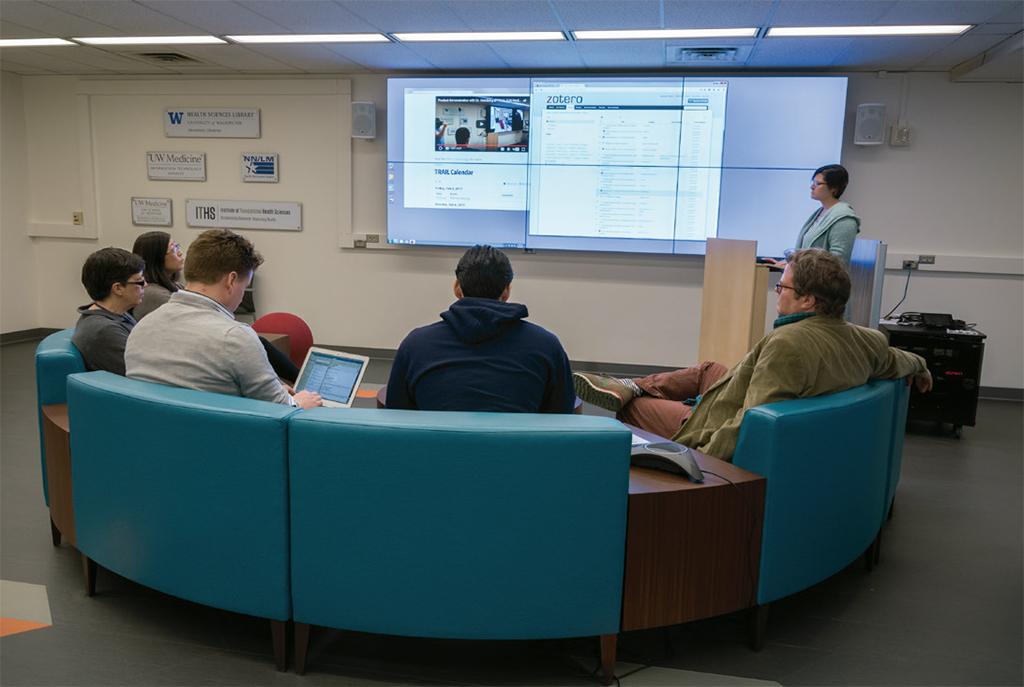 La Biblioteca de Ciencias de la Salud (Health Sciences Library) de la Universidad de Washington creó hace dos años una asociación con el Institute of Translational Health Sciences, la University of Washington Medicine Research Information Technology y el National Network of Libraries of Medicine (Región del Noroeste del Pacífico) con objeto de fomentar la investigación, la formación y el acceso a los recursos, tanto para estudiantes, como profesores universitarios e investigadores.