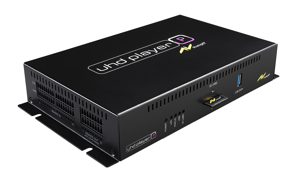 除了, el UHD Player es una compacta solución de reproducción de medios pensada para utilizar en configuraciones multipantalla y videowall. Es un reproductor de estado sólido que permite manejar resoluciones de hasta 3.840×2.160 a 60fps, utilizando el códec H.265.