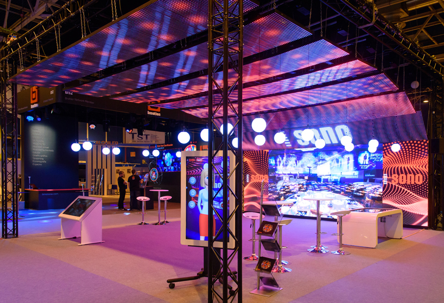 他们在他们的展位上安装了 84 电动 LED 球体与半透明矩阵天花板屏幕集成 31 毫米像素间距. También contaba con un display Unilumin de gran formato y alta resolución con un pixel pitch de 2,6. La acción comercial y promocionales se llevaron a cabo desde una mesa táctil multitouch y un asistente virtual de Digalix Solutions.