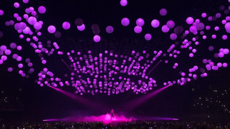 专业的 PRG XL Video 负责加拿大说唱歌手“男孩遇见世界”欧洲巡演的设备; 由投影气球主演的技术表演, en el que ocho proyectores láser de Panasonic crean unas impresionantes imágenes gracias a las tecnologías Blacktrax y d3.