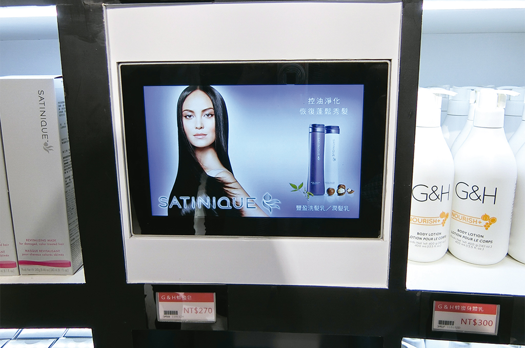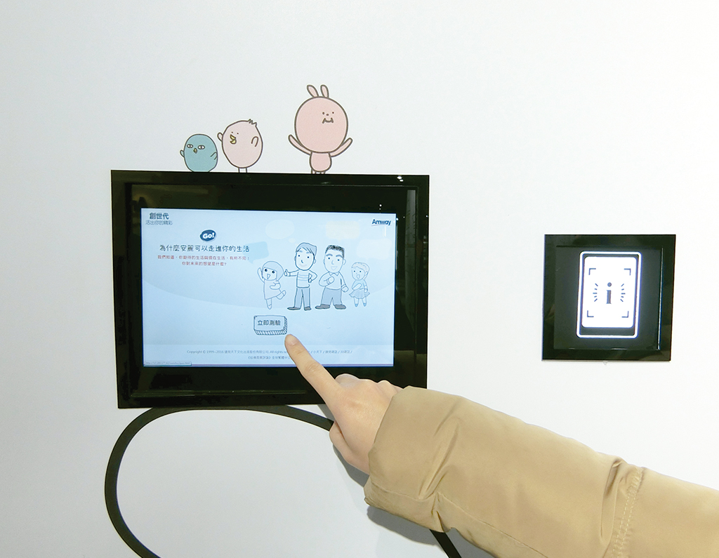 对于这个项目, Amway instaló terminales UTC-510D con pantalla táctil PCAP para servir como kioscos interactivos. Estos están equipados con interfaces de E/S para integrar periféricos como un lector RFID o un escáner de código de barras.