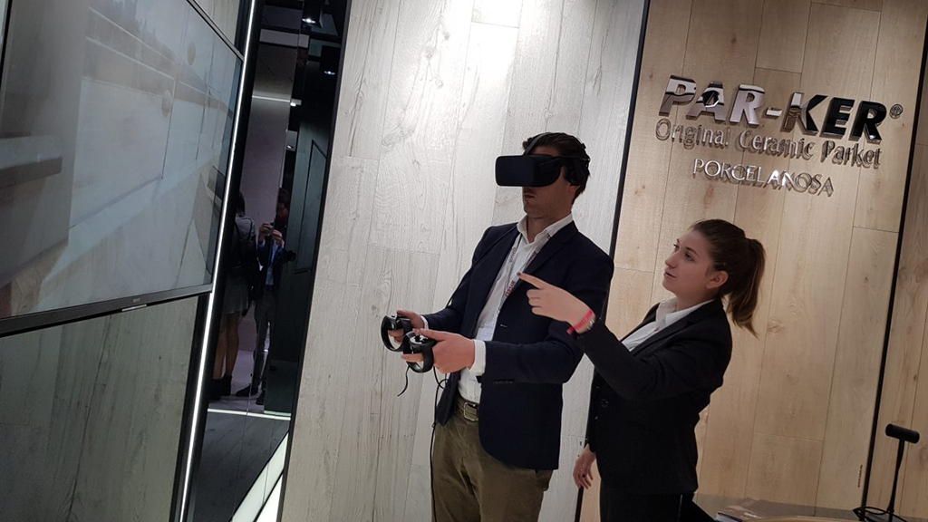 En el caso de Porcelona, hace uso de la realidad virtual para presentar las novedades de su línea Par-ker. En la experiencia que se ha implementado en su stand el visitante puede recorrer libremente una vivienda de dos plantas y comprobar cómo quedan aplicados los diferentes materiales de la colección.