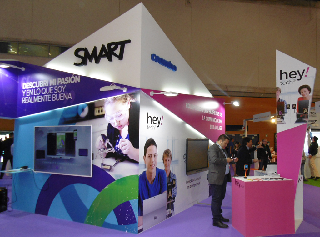 En el stand se muestran las pantallas interactivas de las series 7000, 6000 y 2000, que buscan agilizar el proceso de enseñanza y aprendizaje. La primera es la más avanzada, idónea para grandes aulas; mientras que la 6000 destaca por su facilidad de uso y la 2000 está pensada para aquellos centros y profesores que no precisan de las capacidades táctiles.