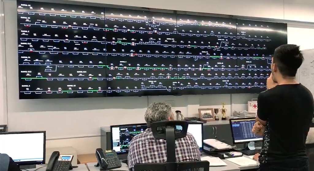 Gracias a esta infraestructura de visualización, el personal del centro de control de tráfico puede ver lo mismo. “Control tiene que saber dónde está cada tren, cada cuadrilla, y darle autorización para estar y moverse en determinadas zonas. Todo esto se representa gráfica y visualmente a través del videowall, y está disponible para todo el mundo de un sólo golpe de vista”, aclara Pregoni.