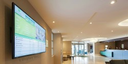 就你而言, en el meeting place se ha instalado una gran pantalla que ofrece datos en tiempo real sobre las reservas que se producen en las salas de reuniones, optimizando su gestión. Esta solución de visualización está conectada con las instaladas en cada una de las salas de reuniones. De este modo las empresas disponen de toda la información necesaria.
