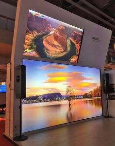 ISE 2018, su stand se divide en dos zonas. En la de salas de reunión, está mostrando cómo lograr la mejor experiencia visual con equipos LaserPanel y una versión mejorada de Supernova XL; mientras que en la de señalización digital se puede ver la Supernova Blade.