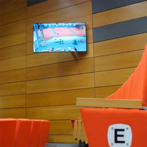 他们每个人都有一个结合AW-UE70 4K远程摄像机的会议录制系统, 配有激光投影仪和松下屏幕 65 英寸 (65低频效果8), 加上一体化视频平台 潘诺普托. 教师可以使用控制器控制讲座录制 爱思创, 它允许您开始和停止录制.