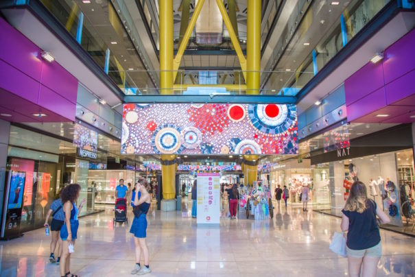 El espectáculo artístico que ofrece Mosaic se materializa a través de siete pantallas de gran formato, que suman más de 180 metros cuadrados de tecnología de visualización Led, localizadas en los puntos más estratégicos del centro comercial. Un trabajo realizado en un tiempo récord de sólo tres semanas.