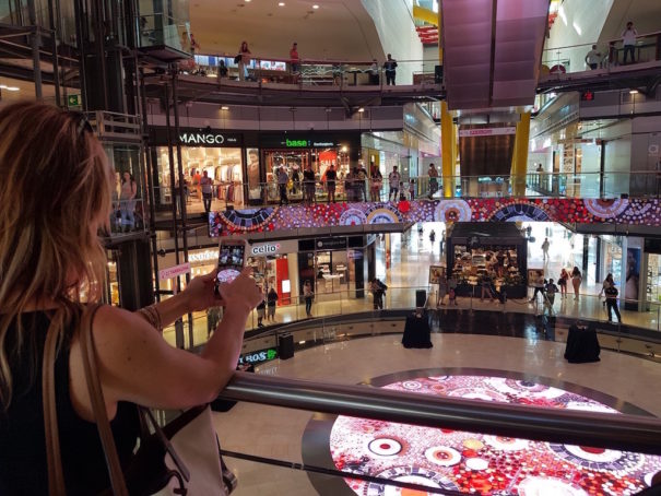Hasta la fecha, se trata de la pantalla interactiva más grande de España, que reacciona visualmente ante los pasos de los usuarios que caminen sobre ella, sigue su recorrido y produce un efecto visual realmente espectacular.