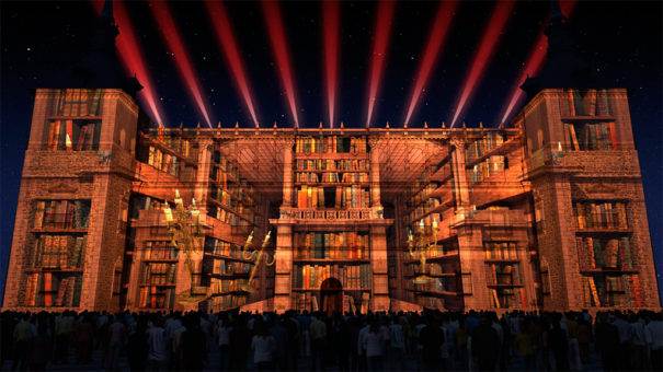 为此,它们将被使用 12 投影仪 22.000 每台和四台投影机流明 30.000, 使用映射技术将阿尔卡萨的外墙变成一个巨大的投影屏幕, 其中包括将图像投影到真实表面上,从而产生视错觉和三维效果. 此外, 该剧将呈现一些 60.000 分布在四个音频点上的声功率瓦数.