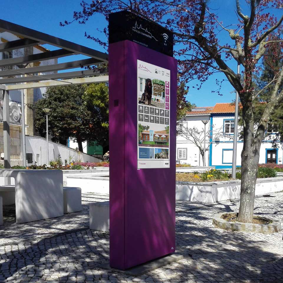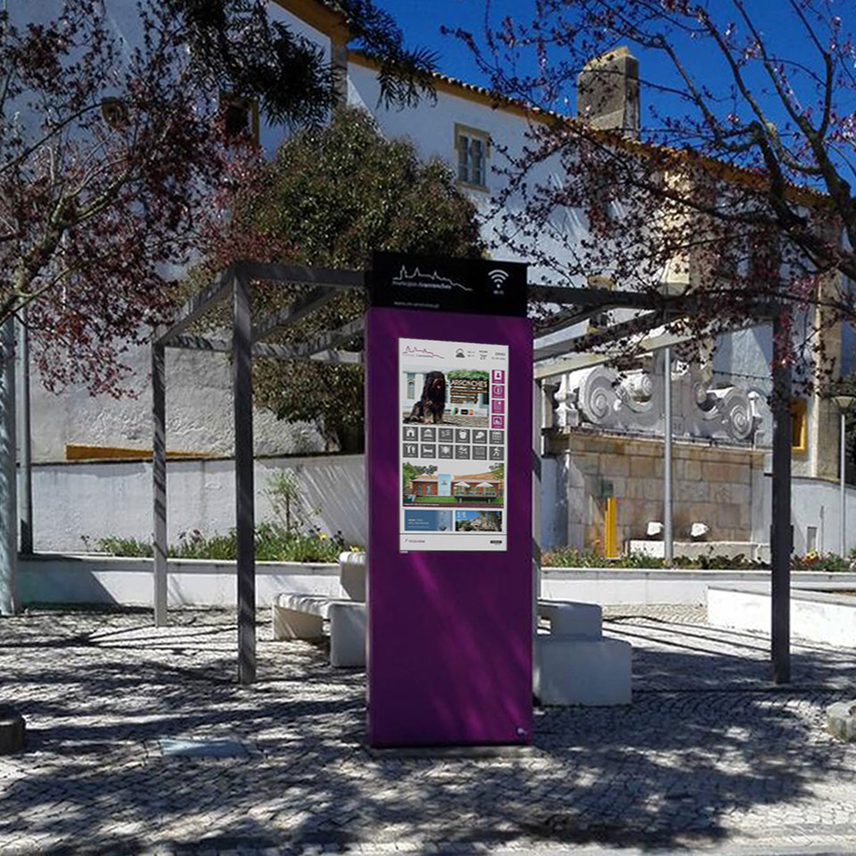 葡萄牙阿龙什市安装了免费 WiFi 网络和带有触摸屏的 Plasmv 户外数字标牌。 46 英寸.