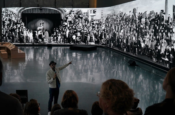En el Museo de Arte Moderno de San Francisco se ha instalado una pantalla digital de 32,6×4,8 metros para mostrar la obra del artista JR, The Chronicles of San Francisco.