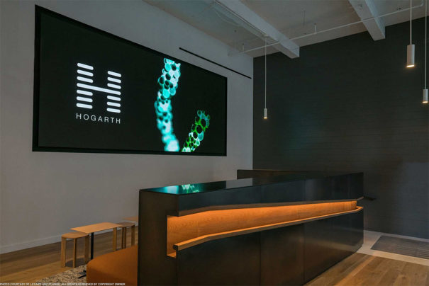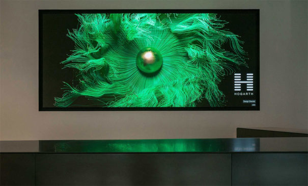 George Freeman, director creativo de Hogarth Worldwide, comenta que la principal idea que había detrás de este nuevo lobby era establecer un espacio para demostrar su destreza en la creación de medios visuales artísticos. “Ese pensamiento impulsó nuestra decisión de perseguir un gran videowall”.