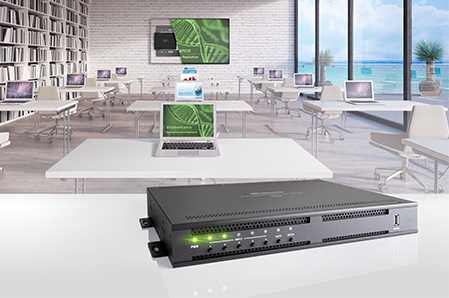 Los productos DMPS Lite incluyen un escalador de vídeo 4K; configuración web autónoma con enrutamiento automático y control de pantalla, y amplificación de audio.