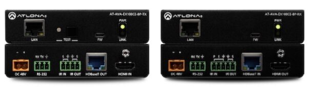 - AT-AVA-EX100CE-BP: kit extensor de 100 metros 4K/UHD con Ethernet, RS-232, control IR y alimentación remota bidireccional.