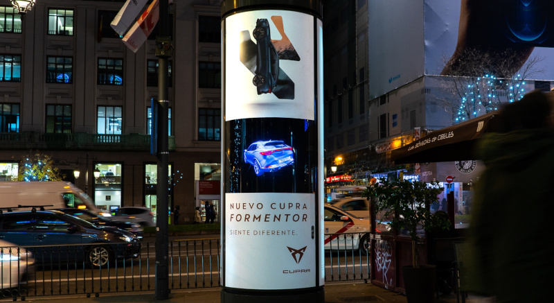 La empresa especializada en publicidad exterior Clear Channel ha desarrollado un innovador proyecto comercial de publicidad exterior para la empresa española de automóviles de gama deportiva Cupra, del fabricante Seat.
