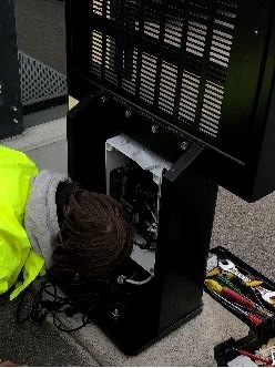 Para este proyecto se han instalado dos sistemas KOF555 con pantalla Xtreme de 55″ en la estación principal de Bussigny, un tercero en el centro de la ciudad y un cuarto en la zona Norte. Una vez que las bases de hormigón se secaron, las unidades se atornillaron y fueron instaladas de forma rápida y sencilla por dos ingenieros de Solmani.