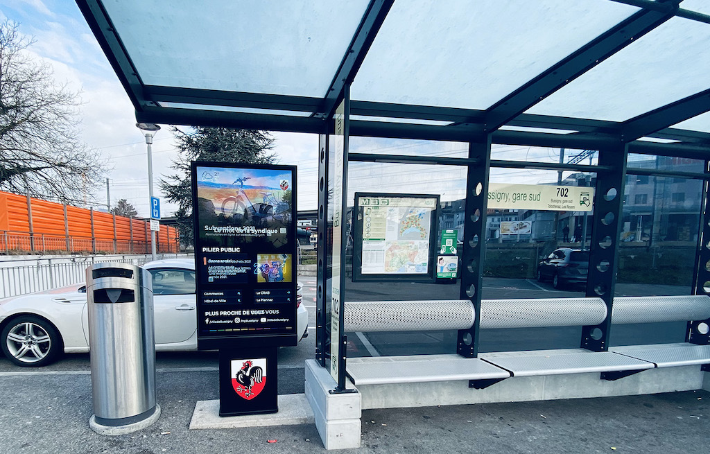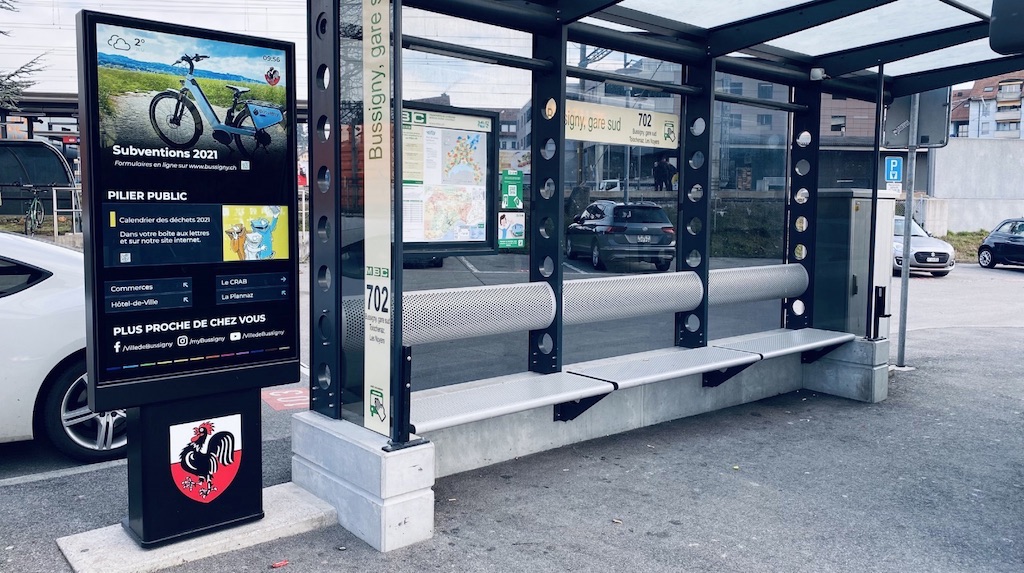 El municipio suizo de Bussigny ha instalado, a través del integrador Solmani, quioscos digitales de exterior de 绝世AV, equipados con reproductores de Spinetix, que funcionan ininterrumpidamente para ofrecer información a sus ciudadanos y visitantes.