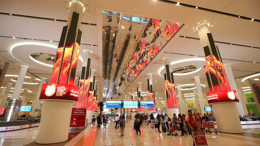 Los pasajeros que llegan al Aeropuerto Internacional de Dubái (DXB) se ven sorprendidos con una singular instalación de audio y vídeo inmersiva, 由执行 Pixel Artworks 与技术 钛麦克斯 y 电磁声学, con la que se quiere mostrar el espíritu de la 世博会 2020 en este emirato árabe, que ha sido reprogramada para su celebración del 1 从十月到 31 行进 2022.