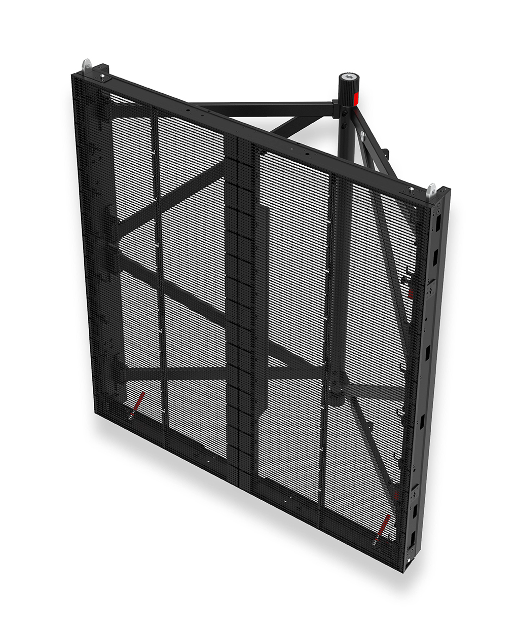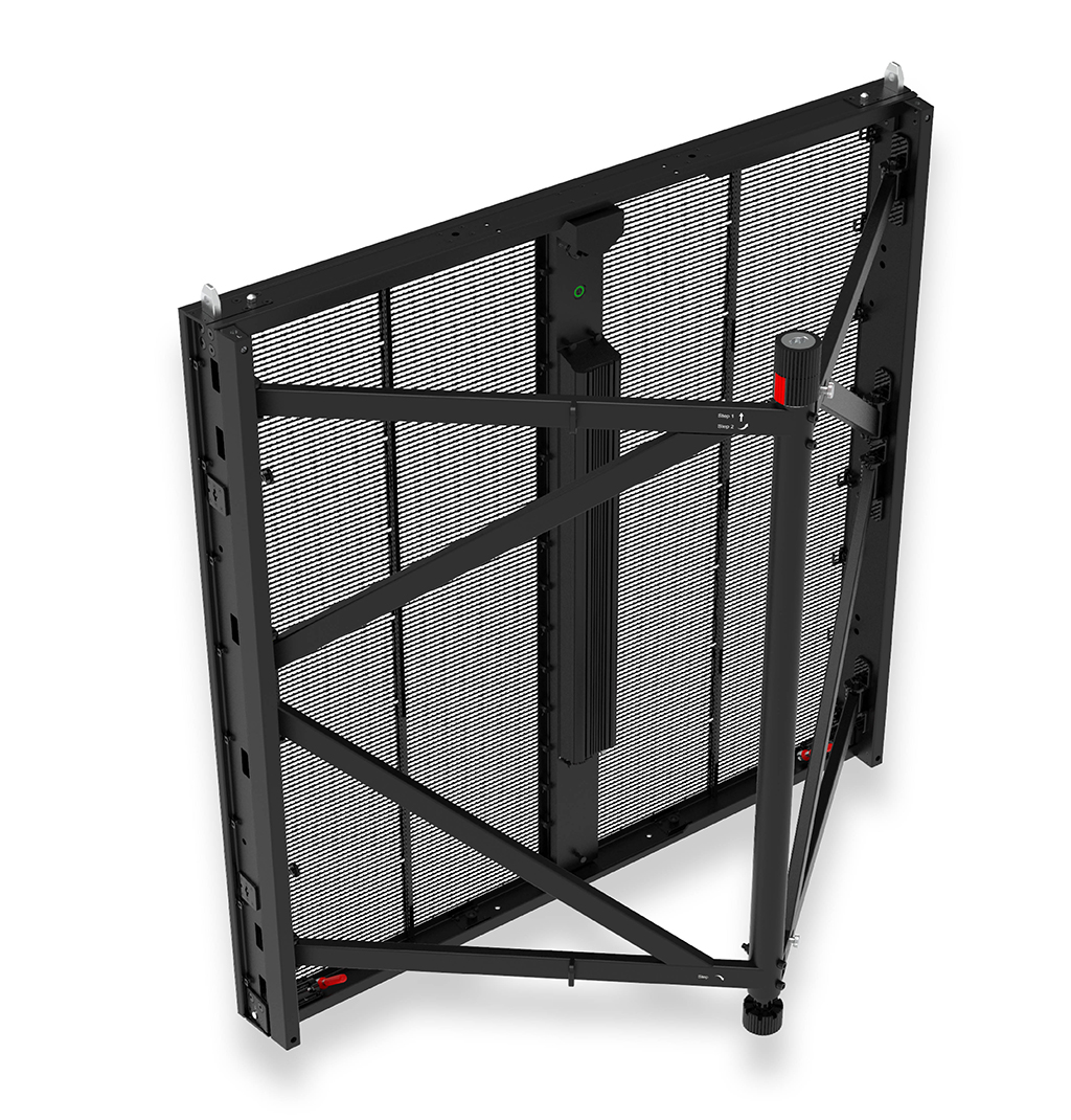 Cada cabinet ofrece una gran capacidad de carga y una avanzada estabilidad general, gracias a su exclusivo sistema de refuerzo contra el viento triangular trasero, que puede resistir velocidades de viento de 20 m/seg para eventos en exteriores, mientras que la pantalla puede alcanzar alturas de hasta 24 地铁.