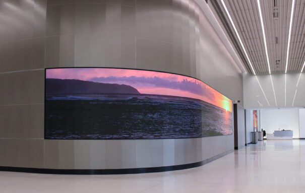 Con sede en un rascacielos de veintiocho pisos en el centro de Milwaukee, en el estado norteamericano de Wisconsin, Associated Bank River Center, el holding bancario más grande de esta zona, ha modernizado la experiencia de sus visitantes en su vestíbulo con la instalación de dos grandes pantallas Led que abarcan un total de 48 m2 de visualización.