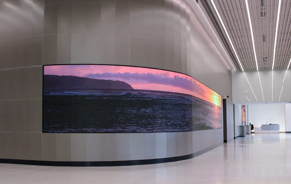 Este gran videowall Led incluye más de 3.5 百万像素 (720x 4.960p), cuya característica arquitectónica más definitoria y singular es su forma, 在 curva convexa, con un radio de 3,6 地铁.