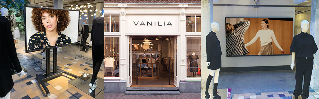 La marca de moda holandesa Vanilia es famosa por sus prendas exclusivas, atemporales y duraderas, con un atractivo aspecto profesional. Todo el proceso de producción se lleva a cabo en la sede situada en Wormerveer; 从设计, el estilismo y la confección hasta las pruebas de las prendas. Buscaba una solución de digital signage, una pantalla de gran tamaño para su sala de exposiciones, donde mostrar vídeos corporativos, presentaciones de nuevas colecciones, ETC.