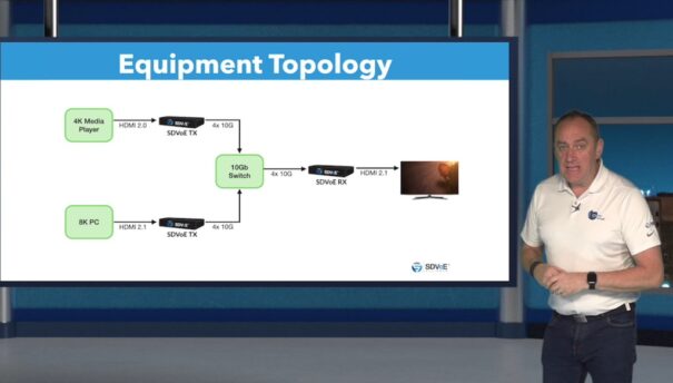 Como recalca Justin Kennington, presidente de la SDVoE Alliance, «somos los primeros AVoIP en hacer 8K, y el hecho de que sea totalmente compatible con los sistemas SDVoE existentes es importante. Su transmisor 4K 10G SDVoE puede enviar señales a su nuevo receptor 8K 4x10G SDVoE. Lo contrario también es cierto, asumiendo que estás enviando 4K desde el transmisor 8K (obviamente no puedes enviar una señal 8K a un RX 4K). Lo que entra, sale sin compresión ni latencia añadidas».