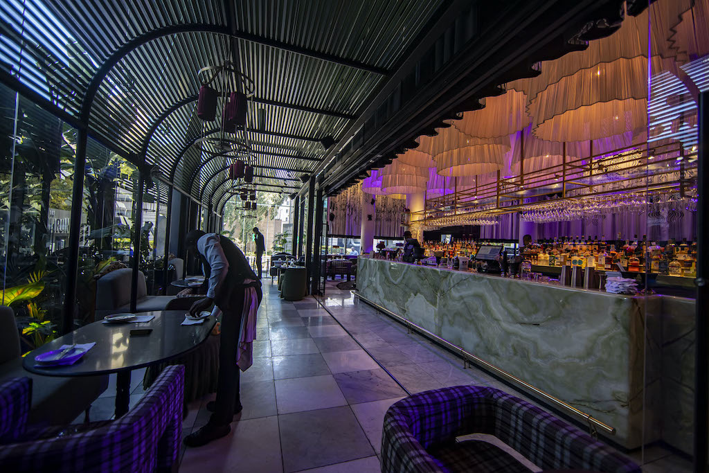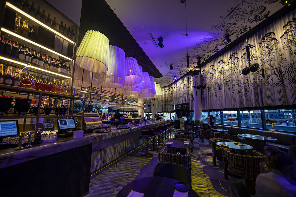 Johnny Scholtz, director del proyecto para DWR, explica que Constantinou ya tenía ideas sobre la iluminación que quería, con efectos sutiles y texturas en la sala en general, que pudiera aumentarse para generar emoción y bullicio para los sets de DJ en vivo los fines de semana y otros eventos.