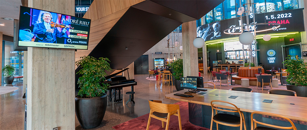 Situado cerca del O2 Arena y del O2 Universum, el hotel Stages ofrece a los visitantes de Praga una experiencia de lujo que muestra la ecléctica escena musical y artística de la ciudad. Junto con sus modernas habitaciones, restaurantes y espacios para reuniones. También cuenta con una red audiovisual totalmente conectada entre el hotel, el O2 Arena y el O2 Universum que permite la transmisión entre los tres lugares en tiempo real con una latencia mínima.