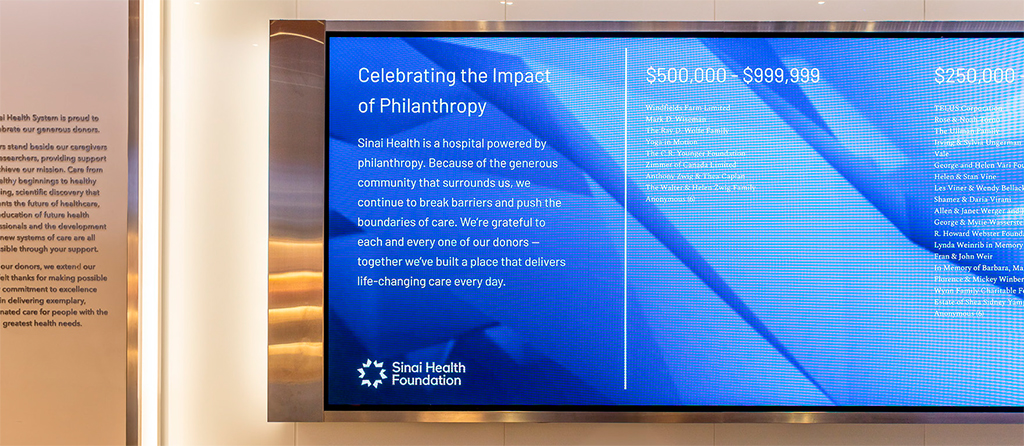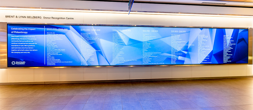 El Hospital Mount Sinai de Toronto actualiza la pared de donantes con Planar