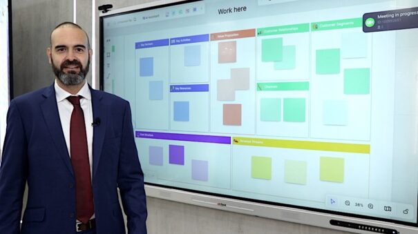 正如所指出的 José Antonio Sánchez, sales manager IT-IWB de la filial ibérica de Dahua (在上图中), “contamos con una nueva gama de monitores interactivos DeepHup para entornos profesionales, 教育与合作, 骗局 sistema de videoconferencia integrado. Nuestra ventaja es que contamos con equipos táctiles todo en uno y otros con la cámara por separado, para que el cliente la coloque donde precise, que son compatibles con cualquier plataforma de CU del mercado”.