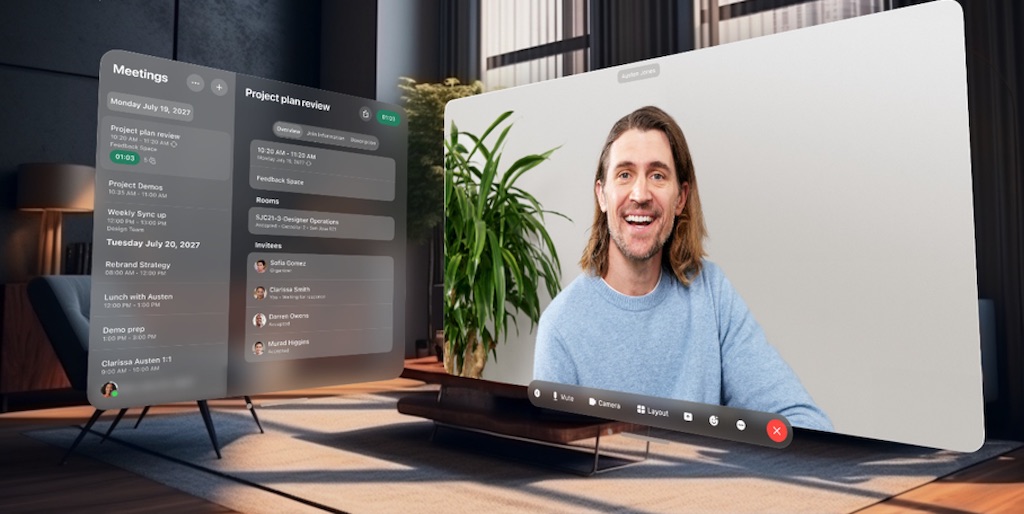 También ofrece la posibilidad de utilizar el lienzo infinito de Apple Vision Pro para cambiar el tamaño y reorganizar estas ventanas, lo que permite al usuario colaborar sin estar limitado por una pantalla fija.