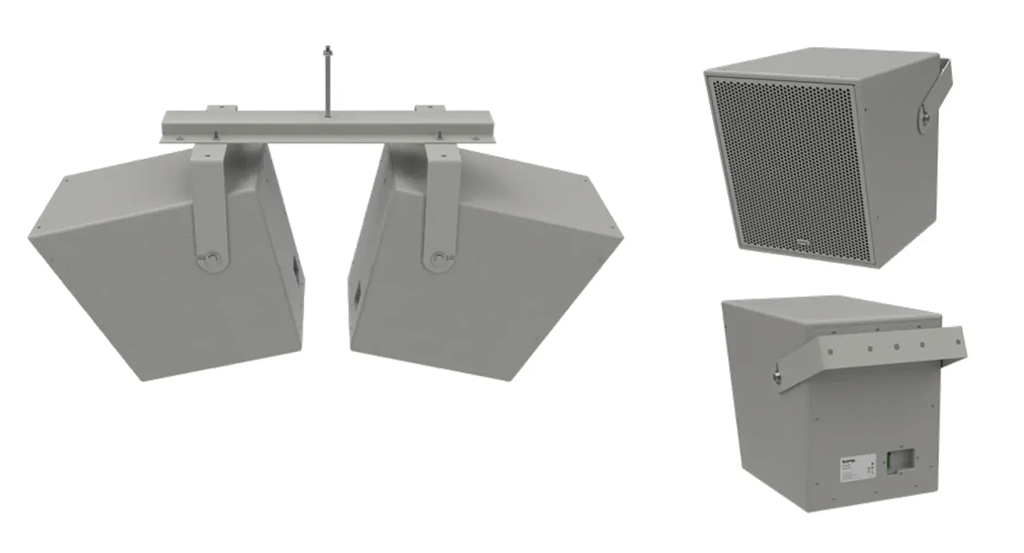 Diseñado para aplicaciones que requieren que el sonido se irradie desde una ubicación central, el conjunto de altavoces CCA-80D back-to-back se suministra con un soporte de montaje doble para instalaciones rápidas y de bajo coste.