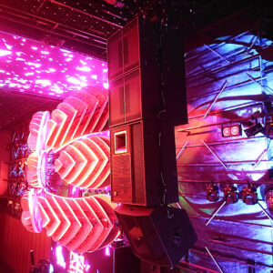 El sistema VHD2.0/VHD1.0 se voló hacia izquierda y derecha con los subwoofers discretamente apilados en el suelo, lo que tiene muy poco impacto visual en el escenario. Varios altavoces EX12 sirven como sidefills, líneas de retardo y monitores de DJ, lo que garantiza una experiencia de audio coherente ya sea para veladas ambientales o conciertos y sesiones de DJ de alta energía.