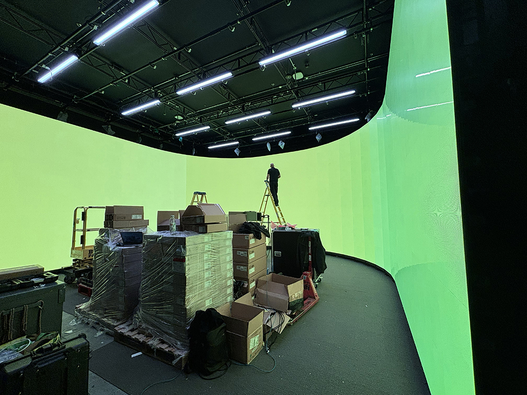 El estudio está equipado con una pantalla Sony Crystal Led con forma de herradura, sin costuras, y un tamaño total de 19,5×4 地铁. Está compuesta por 312 paneles Verona de Sony de 2 像素间距.