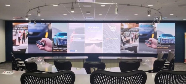 La pantalla del centro de mando contiene más de 300 millones de píxeles y cubre un área equivalente a tres canchas de baloncesto. Puede mostrar de manera intuitiva, eficiente y completa una amplia gama de datos, íconos, imágenes e información de ubicación, al tiempo que permite compartir recursos, tomar decisiones comerciales, ordenar y programar.