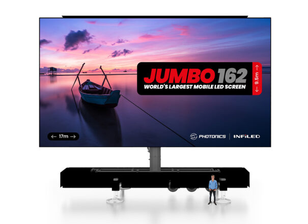 Photonics, conocida por su experiencia en soluciones Led móviles, marcó un hito similar en 2014 con el predecesor del Jumbo162, el Jumbo100 de 100 metros cuadrados.