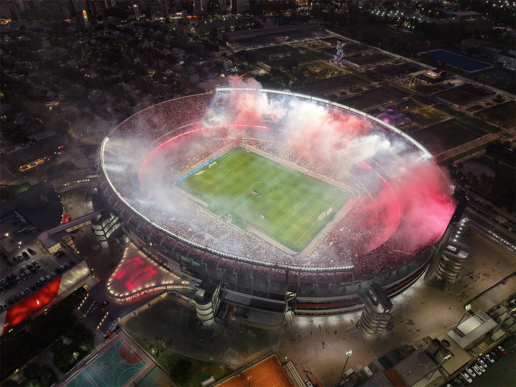 上次装修后, 他 最具纪念意义的体育场, 传说中的总部 河床竞技俱乐部 和阿根廷国家足球队, 它已成为世界上最先进的体育和娱乐场所之一. 容量超过 86.000 观众, 正在为基础设施和球迷体验设定新标准. 此次改造的一个关键内容是音响系统的全面改造, 由声学设计和技术系统 WSDG 专家领导.
