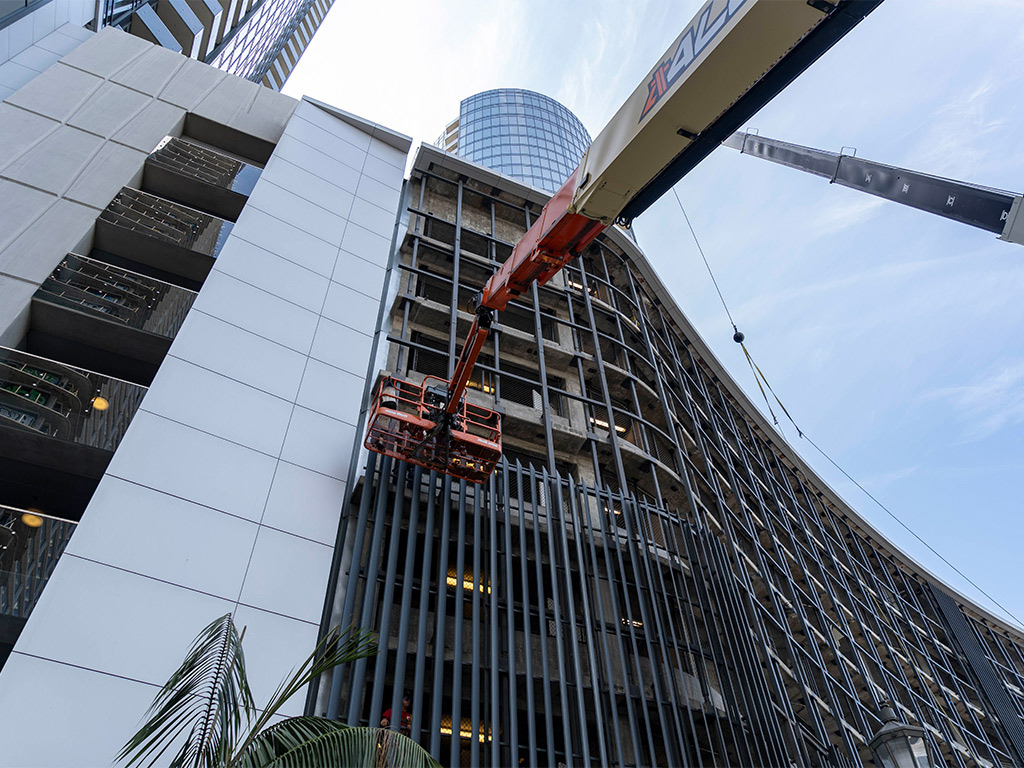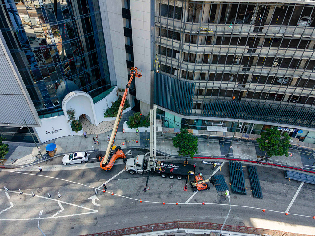 Mientras que el sistema de vídeo Led original de Circa constaba de tres grandes pantallas que rodeaban la esquina sureste de las calles S Figueroa y W 12th, la nueva plataforma DOOH será un solo sistema, con curvas cóncavas y convexas, que se integrará a la perfección con la arquitectura del edificio.