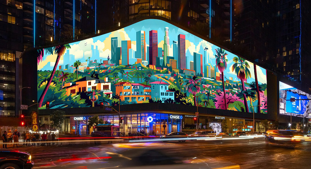 公司 大户外, especialista en publicidad exterior y que ha realizado la representación conceptual que aparece en la primera imagen, gestionará este emblemático espacio publicitario, que se suma a la extensa red de publicidad exterior digital (数字户外媒体) de Los Ángeles.