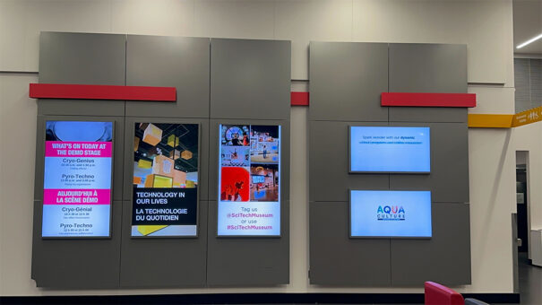 Los visitantes de los tres museos de Ingenium en Ottawa disfrutan de imágenes dinámicas temáticas y contenido de vídeo en 50 pantallas localizadas en el interior, así como los quioscos que se encuentran en el exterior.