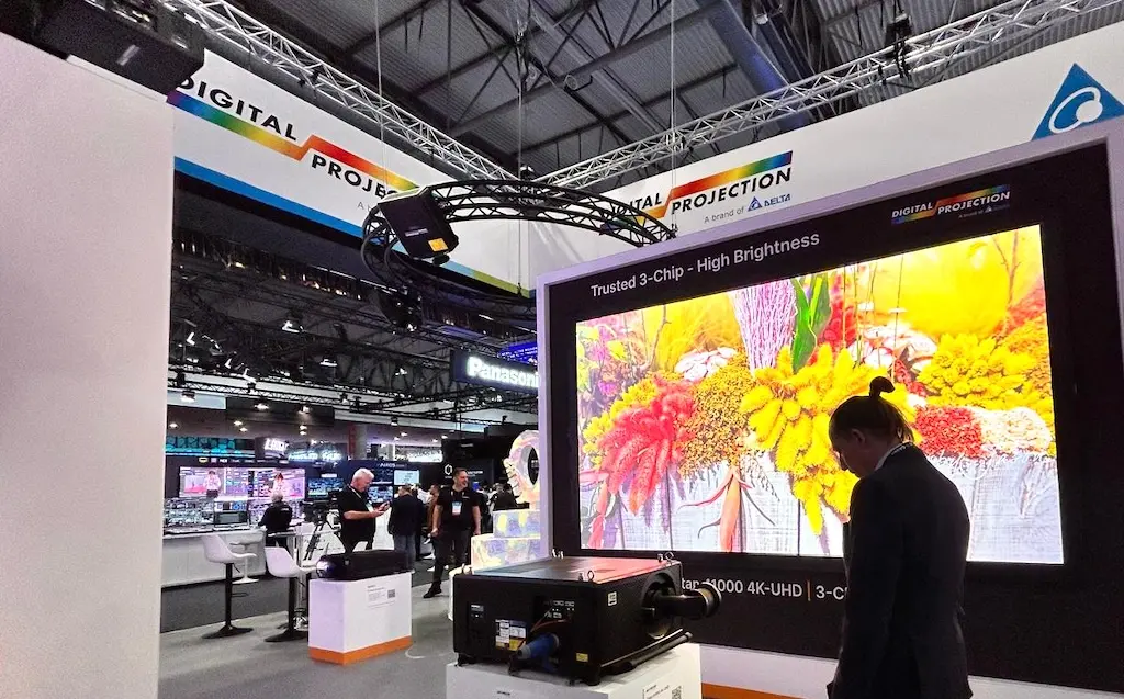 的参与 数字投影 en la feria de Barcelona marca el comienzo de un programa anual que conmemora su posición como referente en tecnología de proyección de alta gama, que se acompañan de novedades como su nuevo equipo láser 8K.