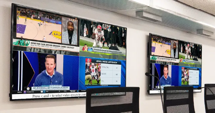 Aprovechando el hardware 光明标志 XT5, Uniguest admite con la versión 26.1 de Tripleplay la entrega de hasta cuatro transmisiones simultáneas en un diseño 2×2. La nueva interactividad del control remoto también permite a los usuarios cambiar rápidamente de la vista múltiple a la pantalla completa y seleccionar el audio que necesitan. Esto abre muchas posibilidades: los aficionados al deporte pueden cambiar entre los ángulos de cámara el día del partido, los operadores bursátiles pueden estar atentos a múltiples fuentes de mercado y los moderadores de eventos o los centros de formación pueden ver múltiples sesiones paralelas e intervenir donde más se les necesita.