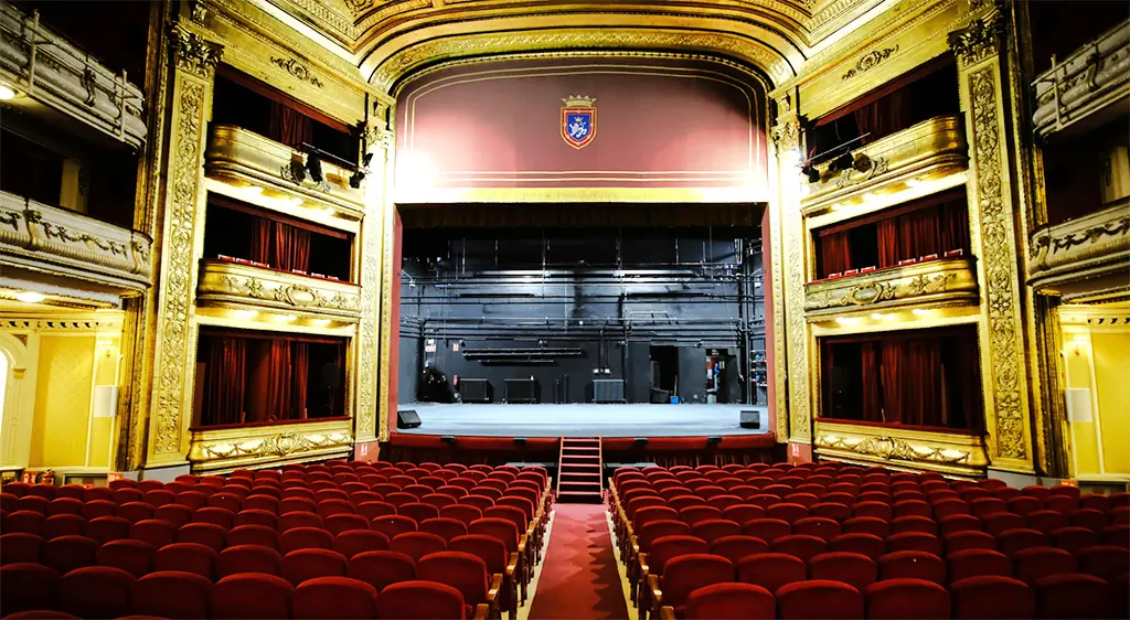 完成于 1932, 尽管它的起源可以追溯到 19 世纪中叶, 他 加亚尔剧院 (以著名纳瓦拉男高音 Julián Gayarre 的名字命名) 它是潘普洛纳最受欢迎的场所之一. 其内部由 四层楼: 第一个是入口大厅和礼堂本身, 与舞台和乐池, 此外 438 座位. 二楼中央摊位可容纳 980 观众, 三楼有一个阳台 218 人们和四楼的“露天剧场” 118 座位.